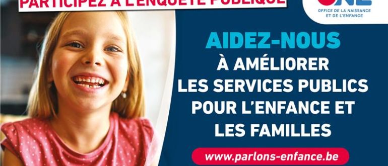 Du 1er octobre au 3 novembre 2025, l’ONE lance une grande enquête publique en Fédération Wallonie-Bruxelles pour mieux comprendre les besoins des enfants et des familles. Pour la première fois, l’Office de la Naissance et de l’Enfance…