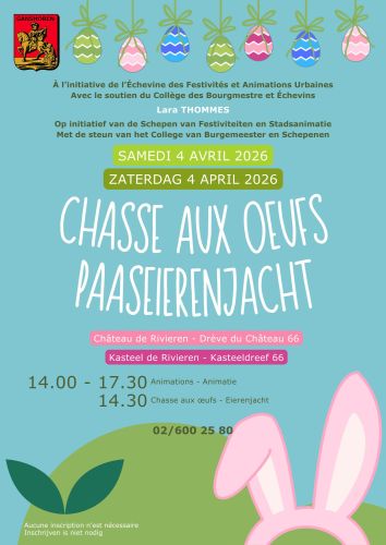 Bloquez la date du samedi 4 avril pour la grande chasse aux œufs qui, cette année, à l’occasion des 185 ans de la commune, aura lieu dans le cadre emblématique du château de Rivieren à partir de 14.00 heures !