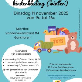 Rommelmarkt met speelgoed en kinderkleding (winter)